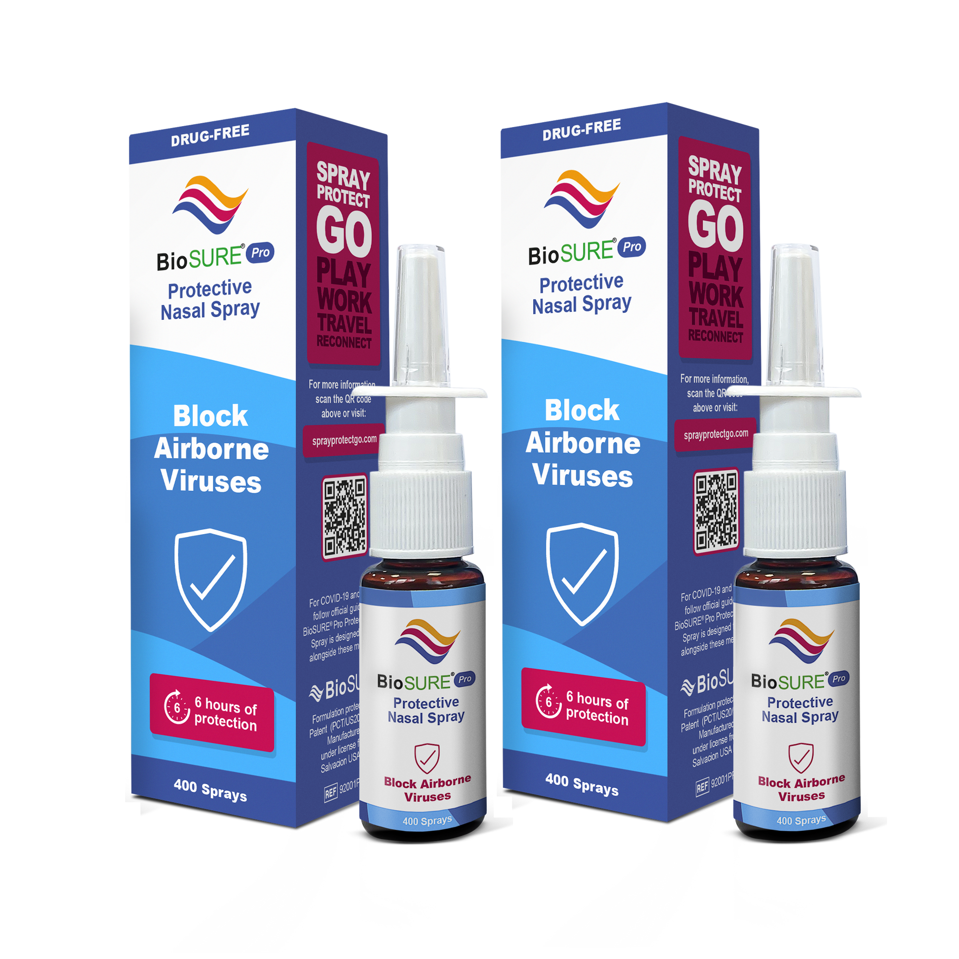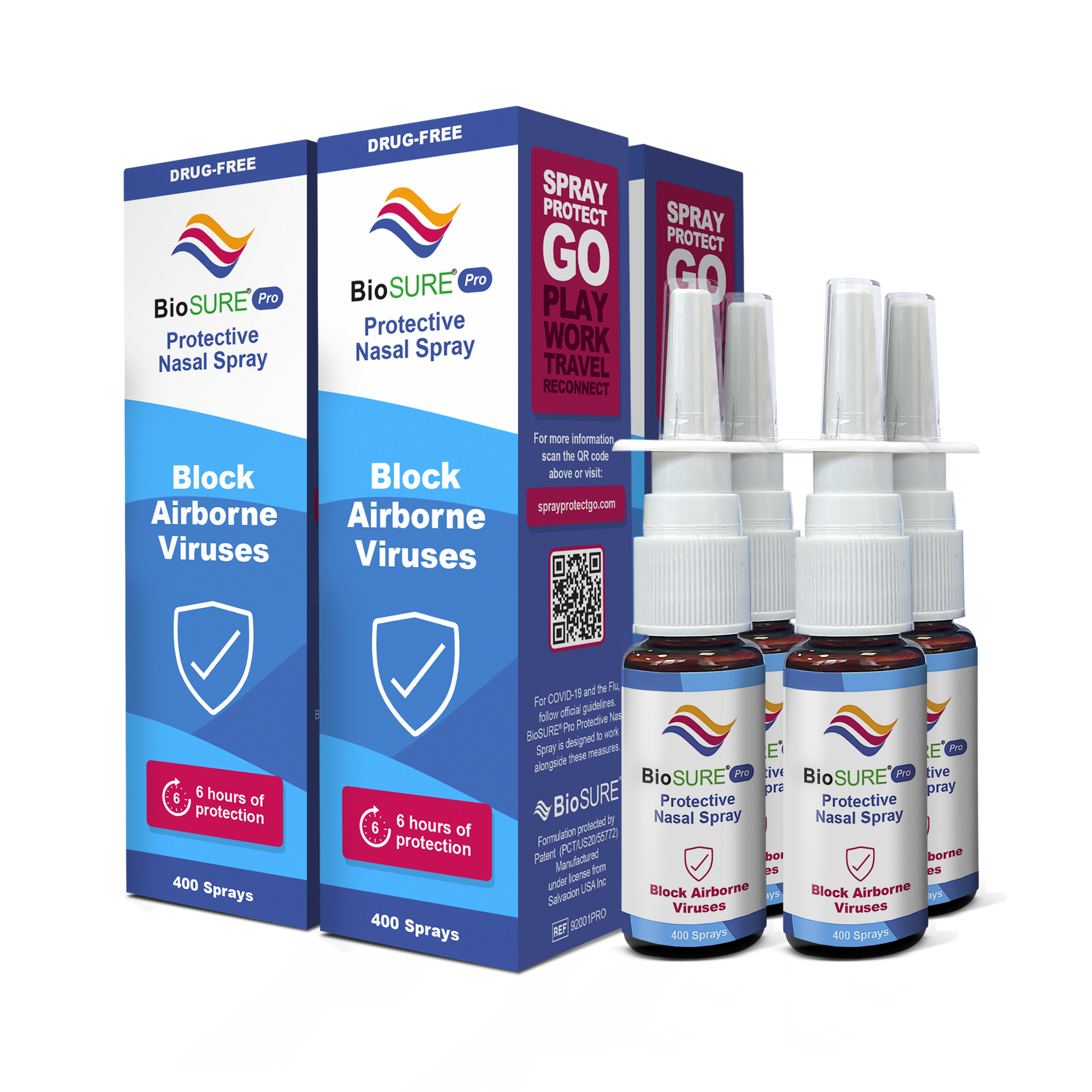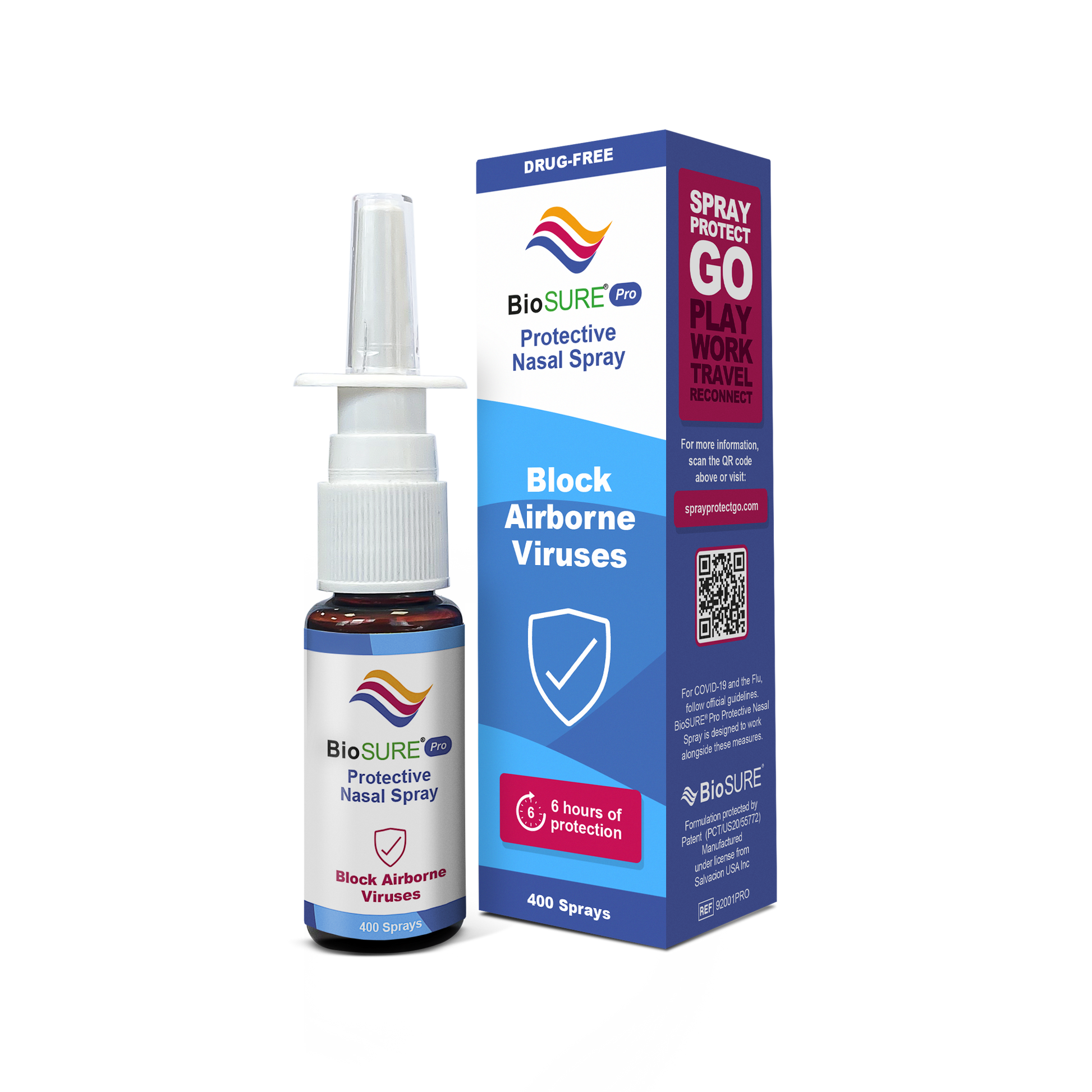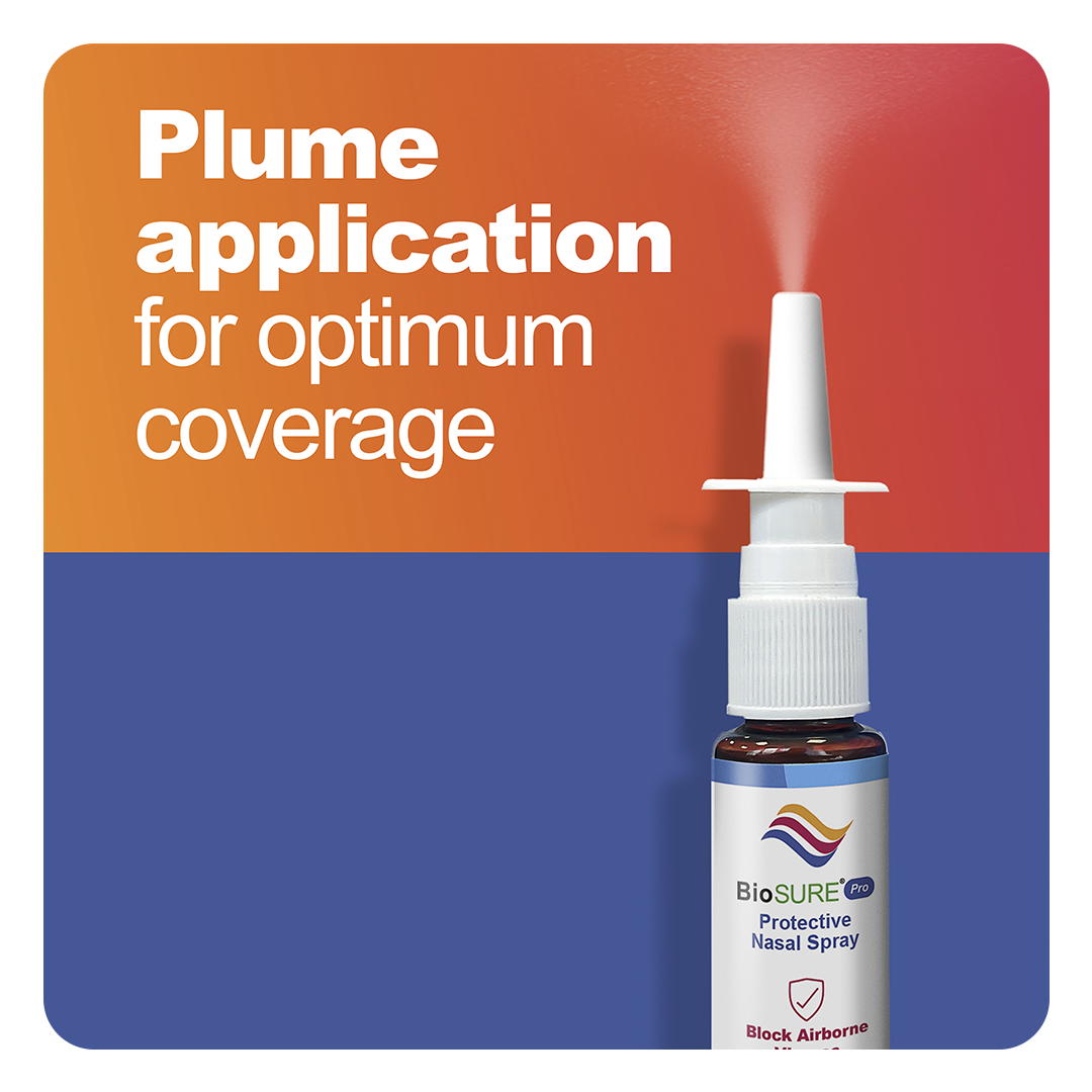 In combination with current recommended guidelines, BioSURE® PRO Protective Nasal Spray is a powerful way to protect yourself and help prevent the spread of many airborne respiratory viruses.