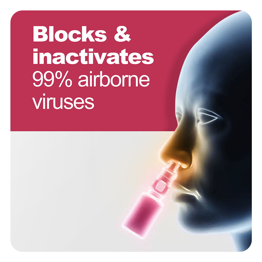 FIGHT AND DEFEND WHERE VIRUSES ATTACK. Applied as a plume spray for optimum coverage, the microemulsion formula creates a physical barrier at the main site of infection giving a layer of defence that helps block infective virus strains that travel through the air.