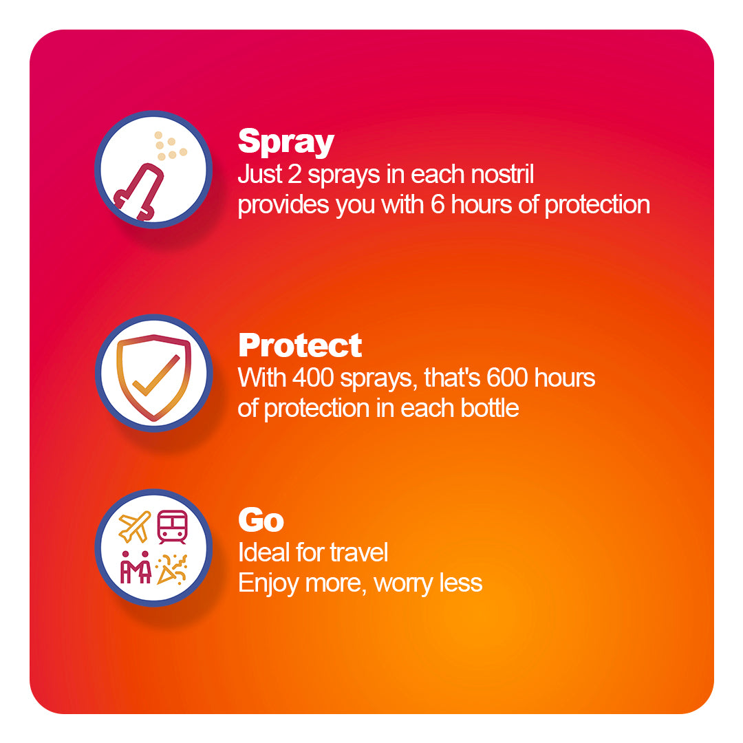 Remember the 2x2x2 rule - 2 sprays, 2 nostrils, 2 times a day = uninterrupted protection